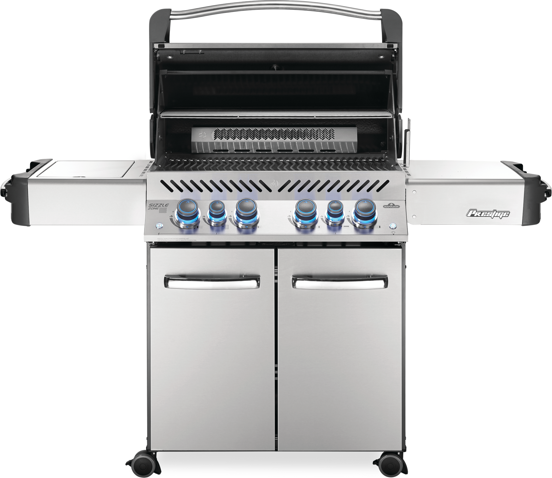 • The Stainless Steel Prestige P500RSIB Gas Grill features 4 burners, 80,000 total BTU's, and 900 square inches of total grilling area
