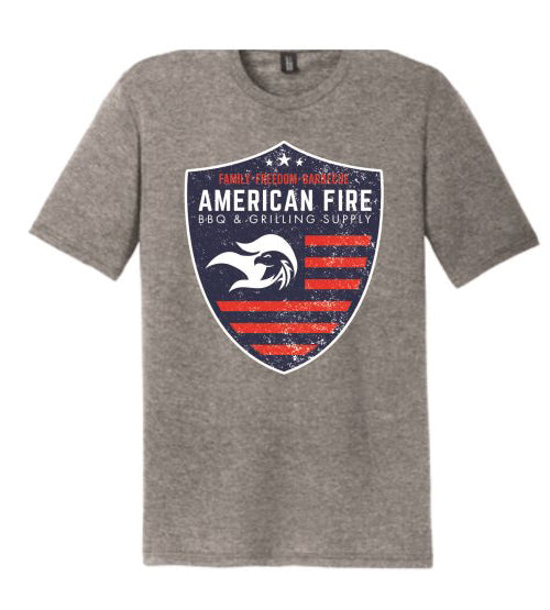 This is our favorite American Fire Badge Logo T-Shirt. Family.Freedom.Barbecue