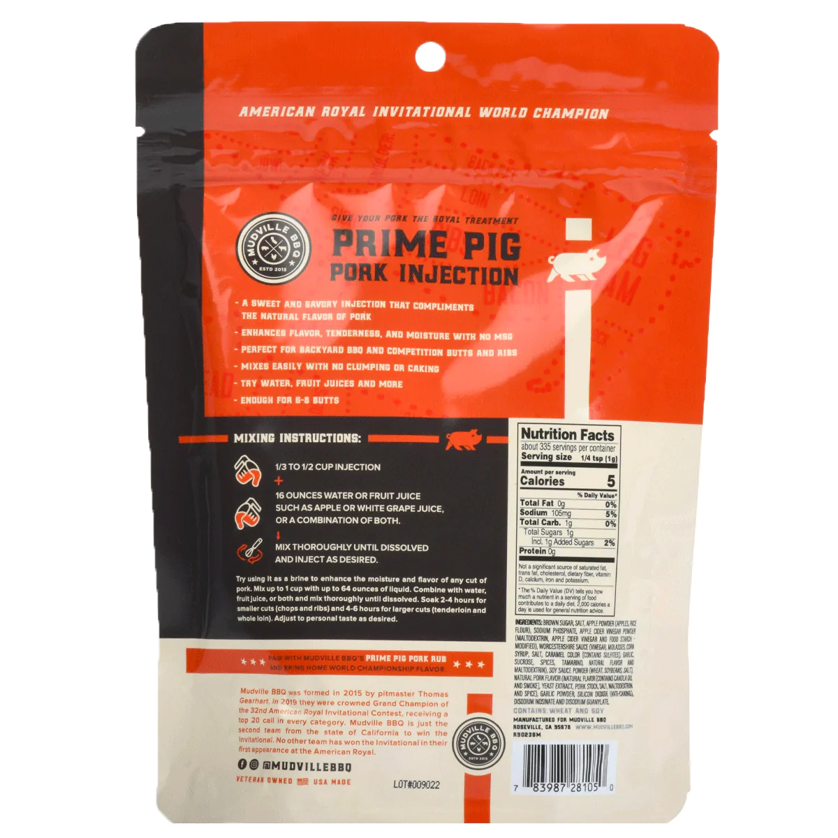 This sweet and savory injection is perfect for backyard BBQ and competition butts and ribs. Our injection complements the natural flavor of pork and enhances tenderness and moisture for the perfect bite every time. Mixes easily with water or fruit juice with no clumping or caking.