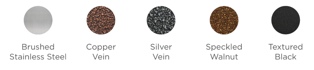Brushed Stainless Steel, Copper Vein, Silver Vein, Speckled Walnut and Textured Black