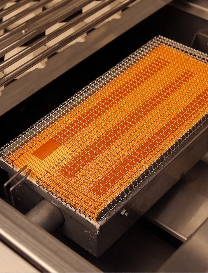 - Powerful infrared rear-rotisserie burner produces 15,000 Btus