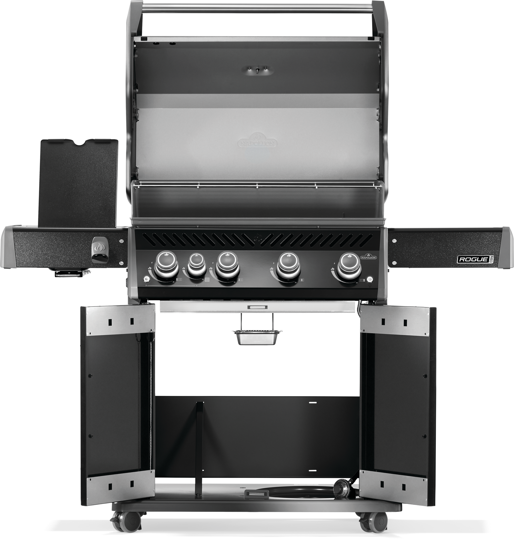 The Rogue® PRO 525 Black Propane or Natural Gas Grill with Infrared Side Burner features three bottom burners and porcelainized cast iron cooking grids. Effortlessly ignite this grill every time with the battery-free ignition. Utilize the integrated, infrared sear station, side burner for sauces and sides or to sear the perfect steak. With ample cooking space, you can grill, sear, smoke, or roast with ease. The durable black porcelain enamel and powder coat add style and simplicity to grill maintenance. Enjoy features like white light backlit control knobs, a stainless steel warming rack, and convenient bottle opener. Unlock your inner grill master with the Rogue® PRO, and enjoy a versatile, quality grilling experience.