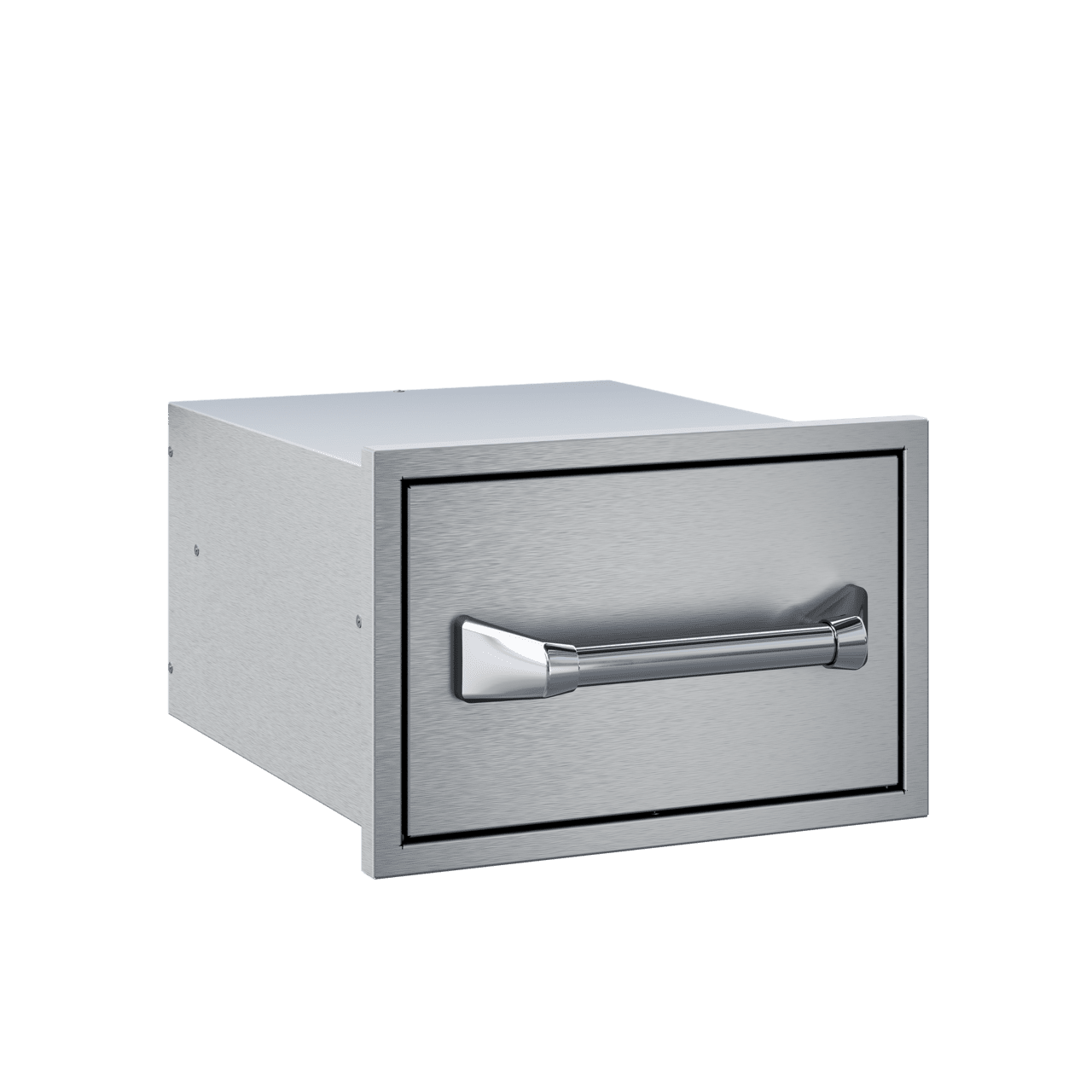 With the 15 inch paper towel drawer, keeping up with your paper towel roll is effortless. A convenient storage tray provides space for rags or cleaning solutions as well.