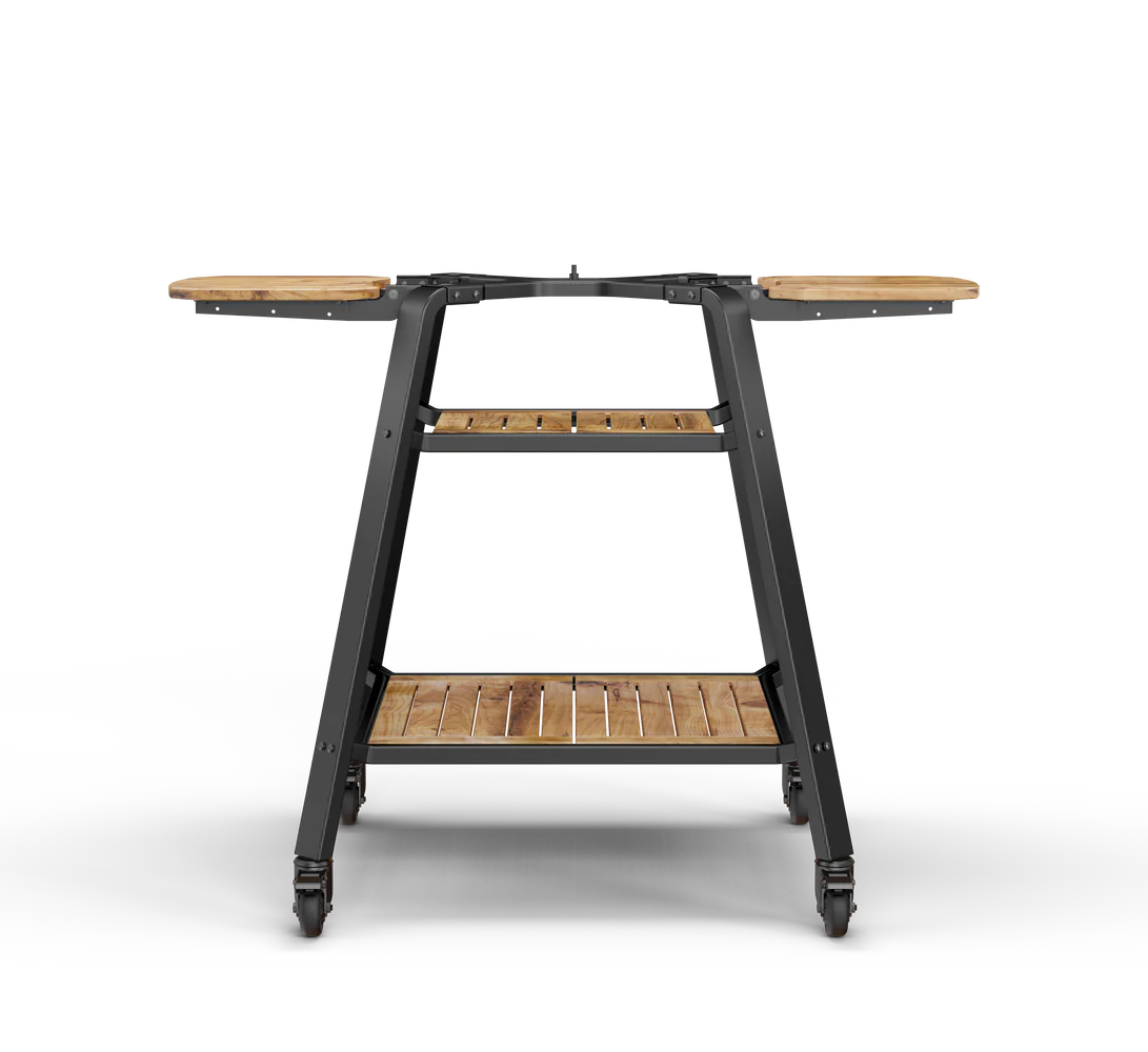 Designed with cooking on the Dome in mind, your oven securely connects to the stand with an easy turn fastener and sits at the perfect height for cooking. The bamboo shelves, hanging hooks and adjustable wings are built in for convenience while the four large wheels make it easy to move your oven around your backyard.